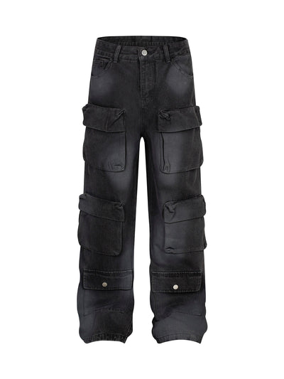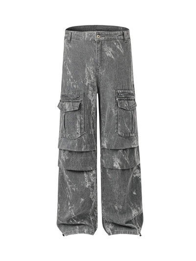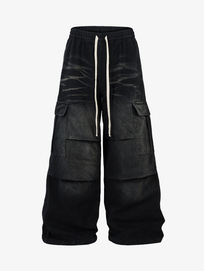Washed Multi-Pocket Baggy Barrel Cargo Jeans