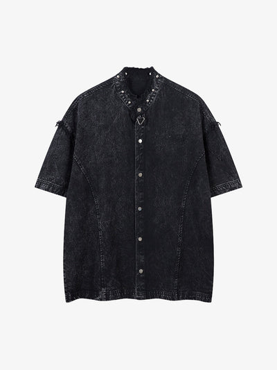 Rivet Deconstructed Split Stitching Denim Short-sleeved Shirt