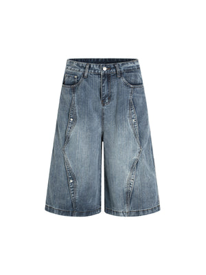 • Design Elements: Distressed details on denim shorts, camouflage wide-leg trousers, layered design