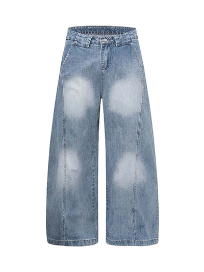 Washed Distressed Deconstructed Split Barrel Jeans - 2359
