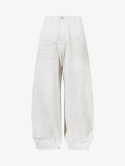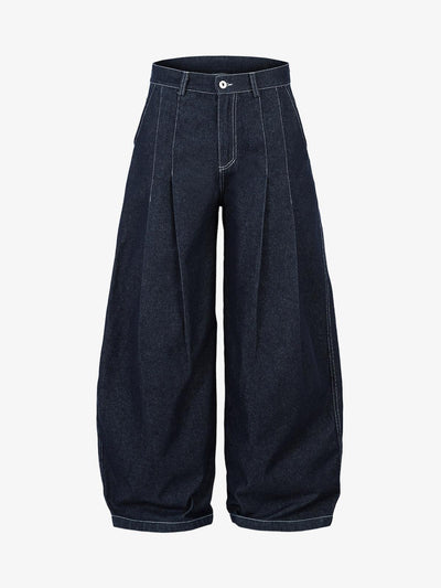 Deconstructed Contrast Stitching Pleated Baggy Barrel Jeans - 2343