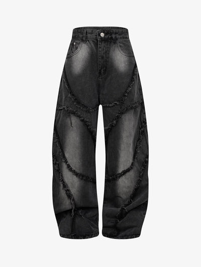 Washed Distressed Raw Edge Barrel Jeans - 2402