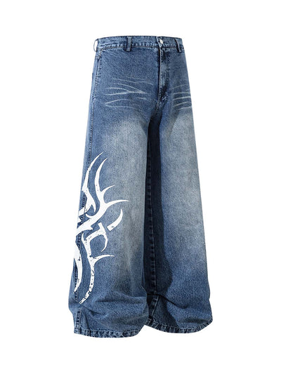 Graffiti Distressed Washed Baggy Jeans - 1886
