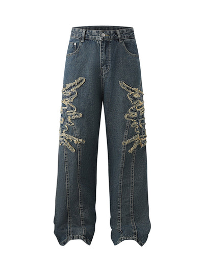 Raw Edge Patch Straight Jeans