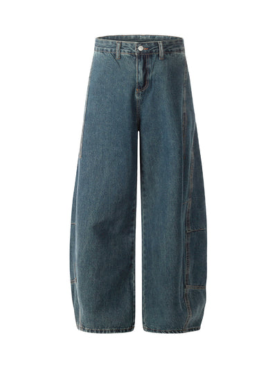 Washed Deconstructed Split Scimitar Baggy Barrel Jeans