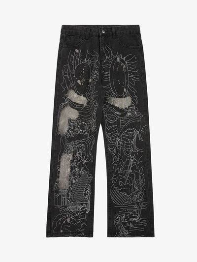 Dark Gothic Embroidered Star Straight Jeans