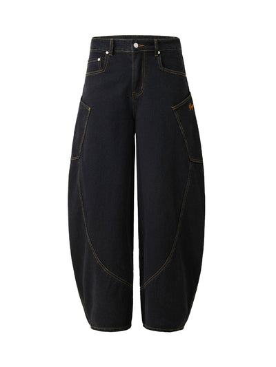 Multi-Pocket Deconstructed Washed Barrel Cargo Jeans