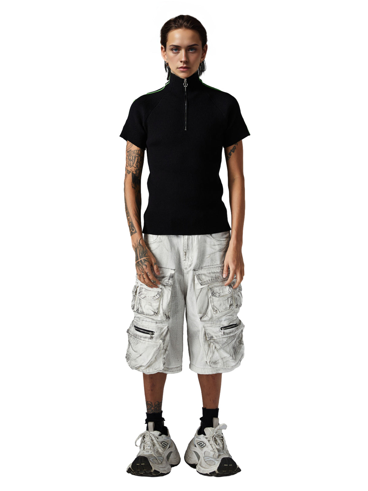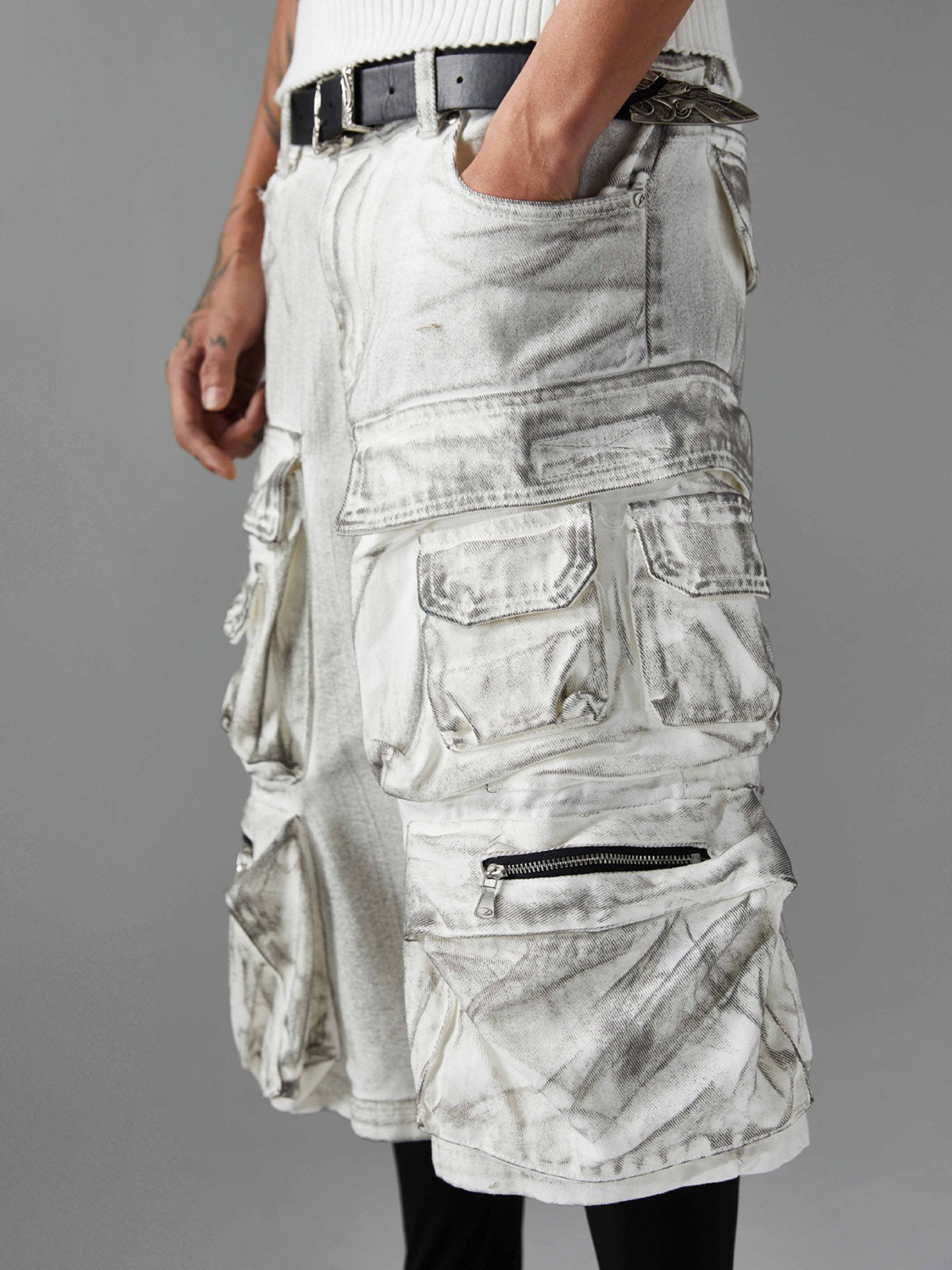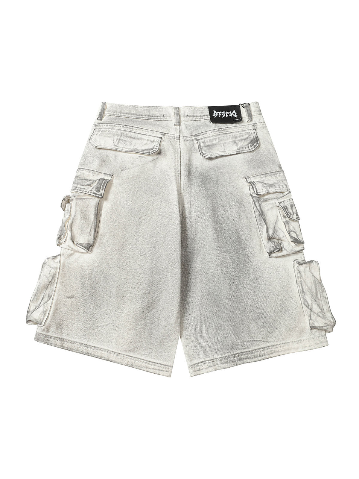 • Design Elements: Multiple functional pockets, distressed look, adjustable waistband