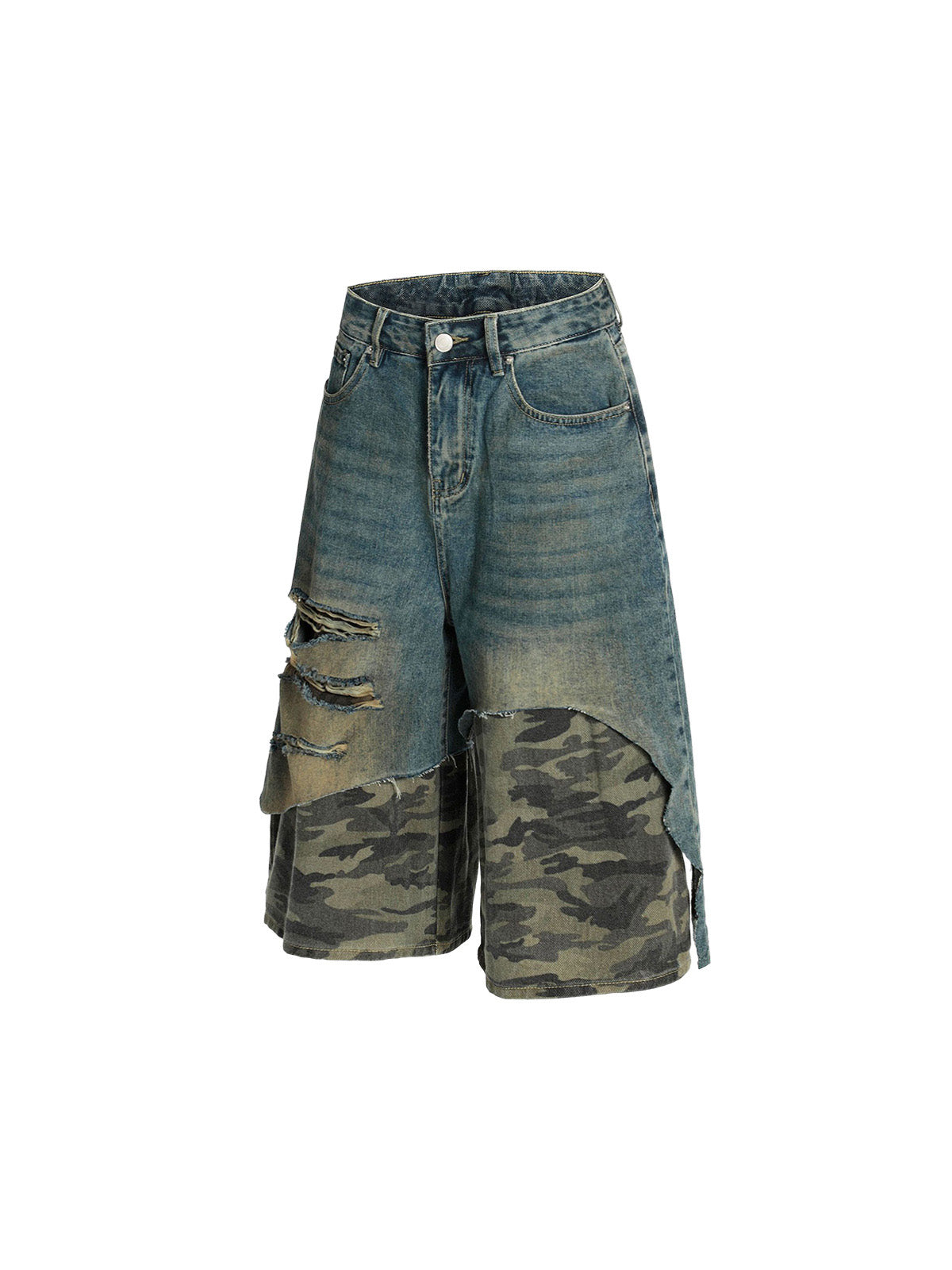 • Design Elements: Ripped knee details, camouflage hem, and classic five-pocket design