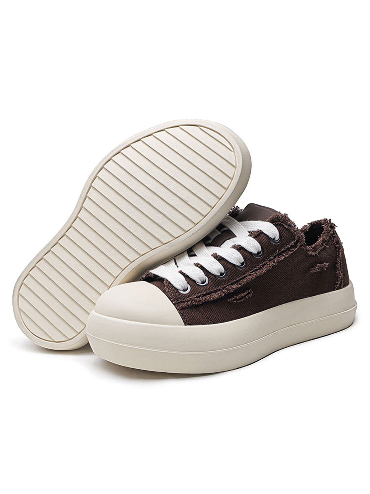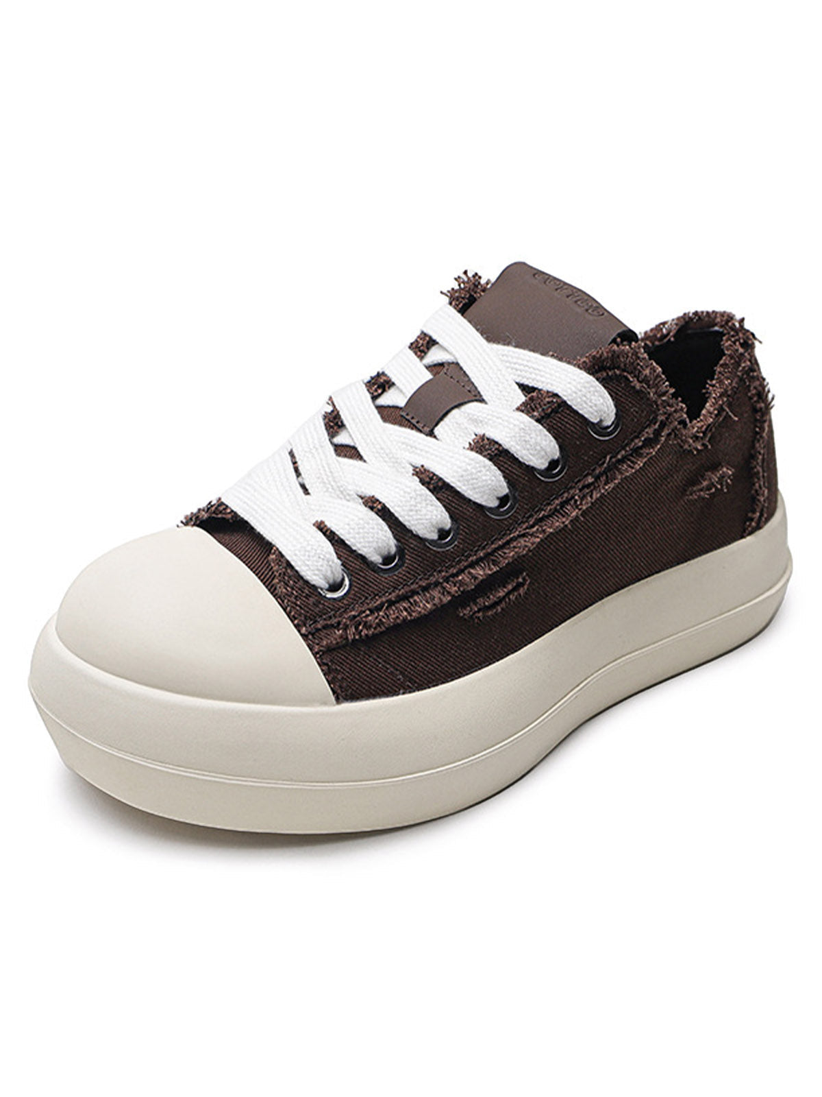 • White laces add a clean contrast to the brown canvas, making it versatile for various styles