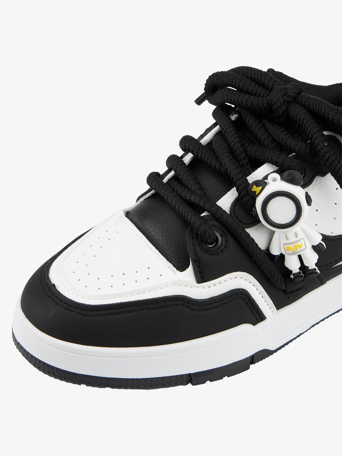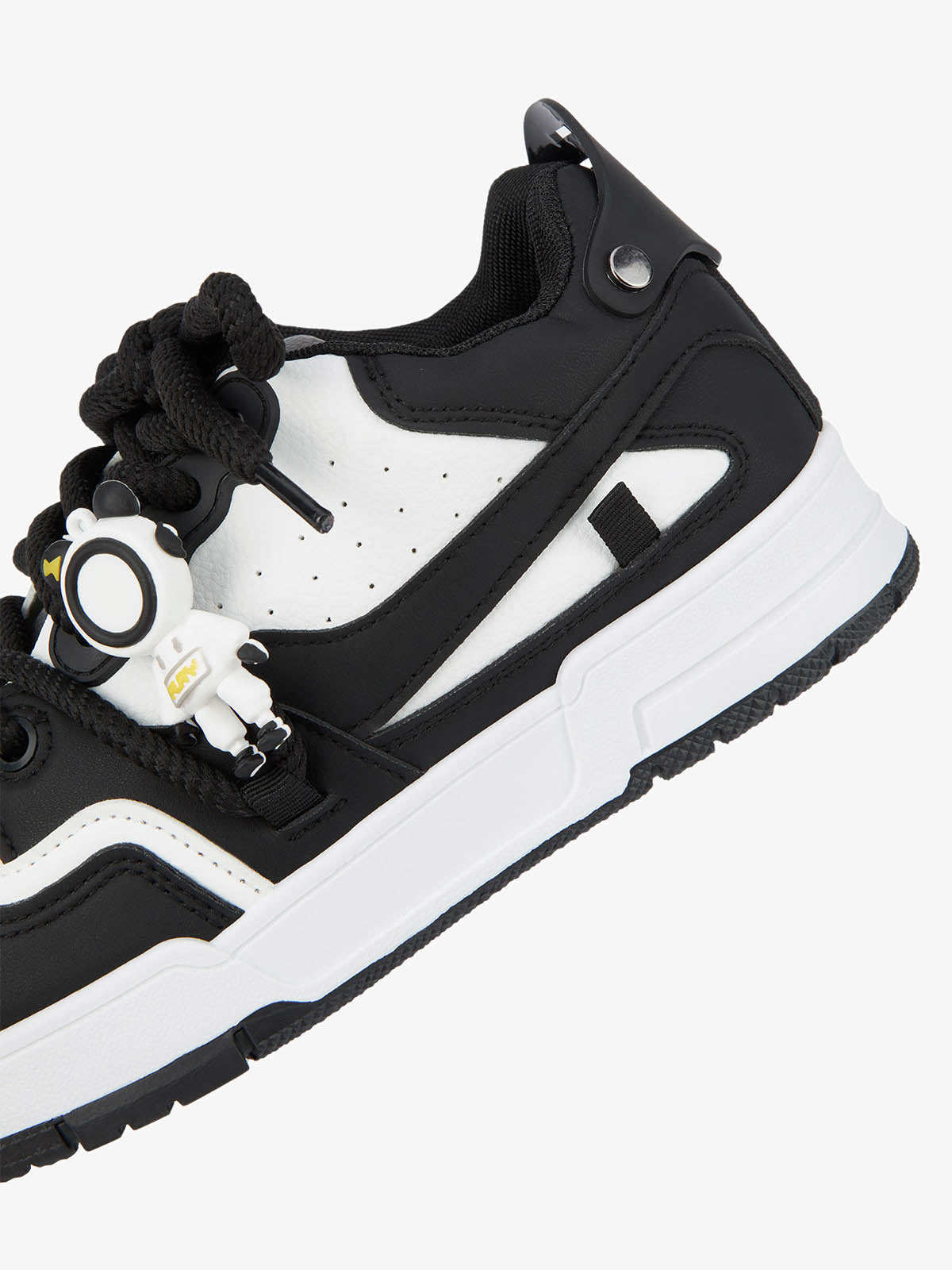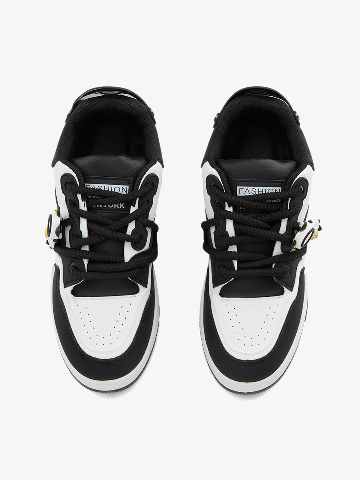 • Detail Features: Chain Accent, Floral Embroidery, Lace-Up Closure, Chunky Sole