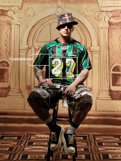 Original Retro Striped Spliced Sports Jersey T-Shirt - 2422