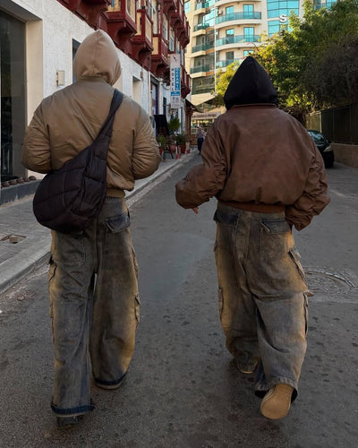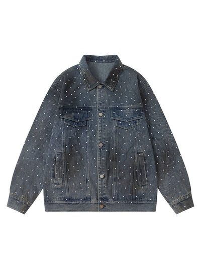 Hip-hop Beaded Washed Denim Jacket - 2264