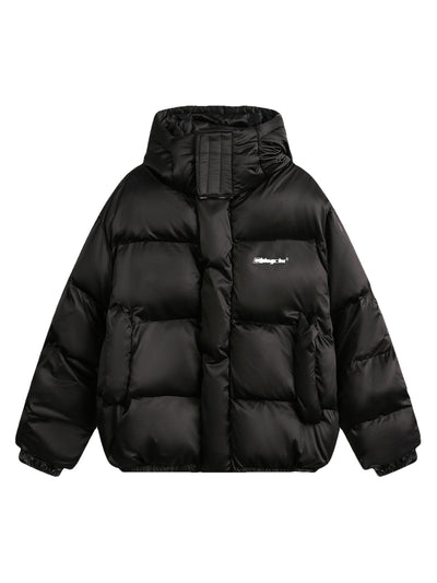 Vintage Print Stand Collar Hooded Puffer Jacket