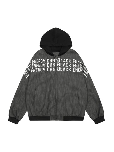 Star Letter Print Zipper Hoodie Jacket - 1540