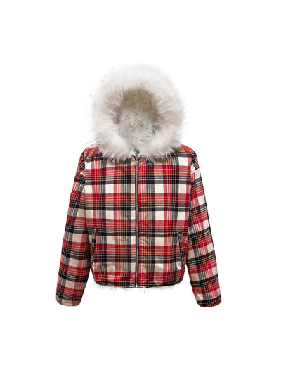 Patchwork Embroidered Fur Hooded Jacket - 2333