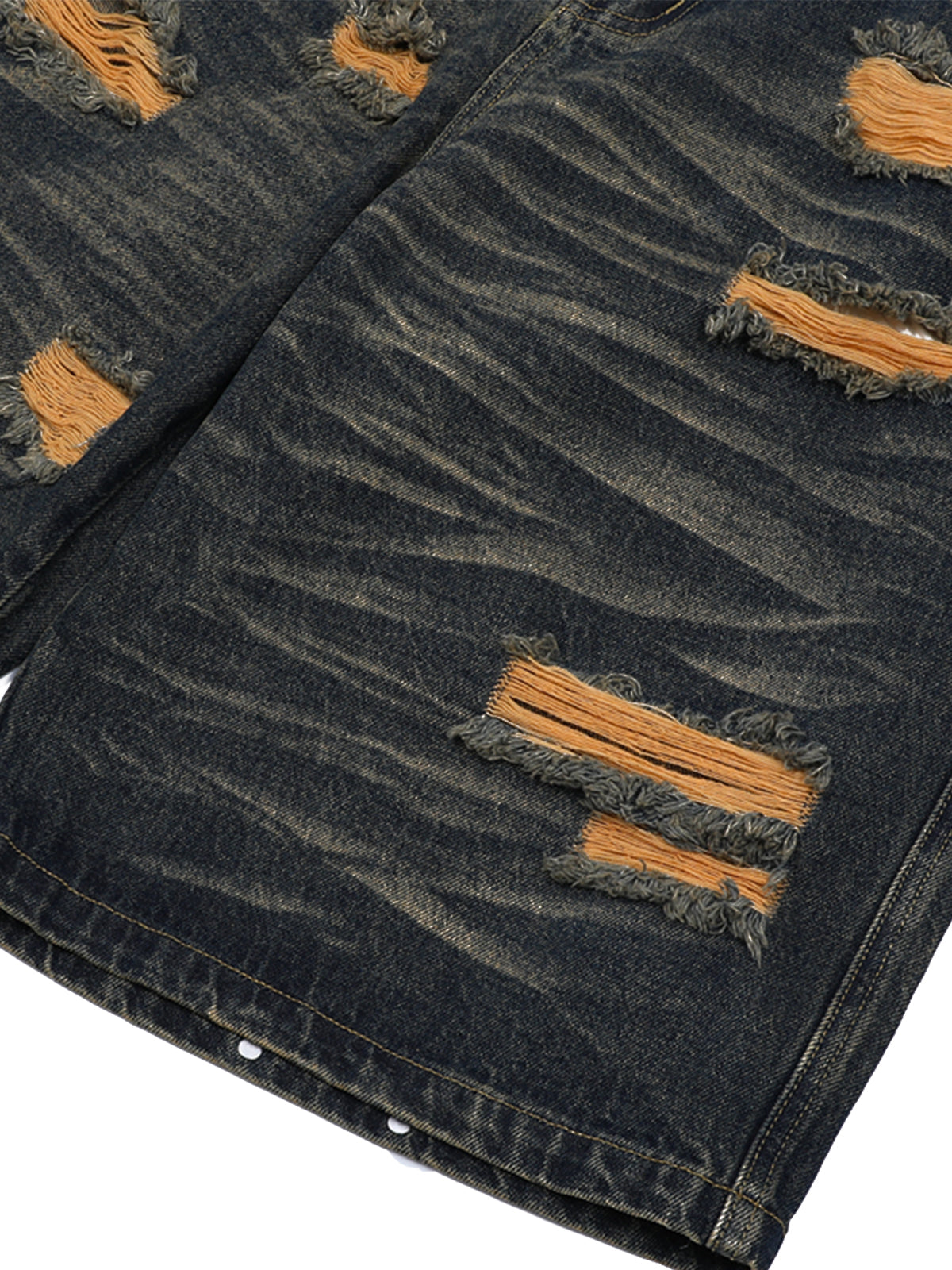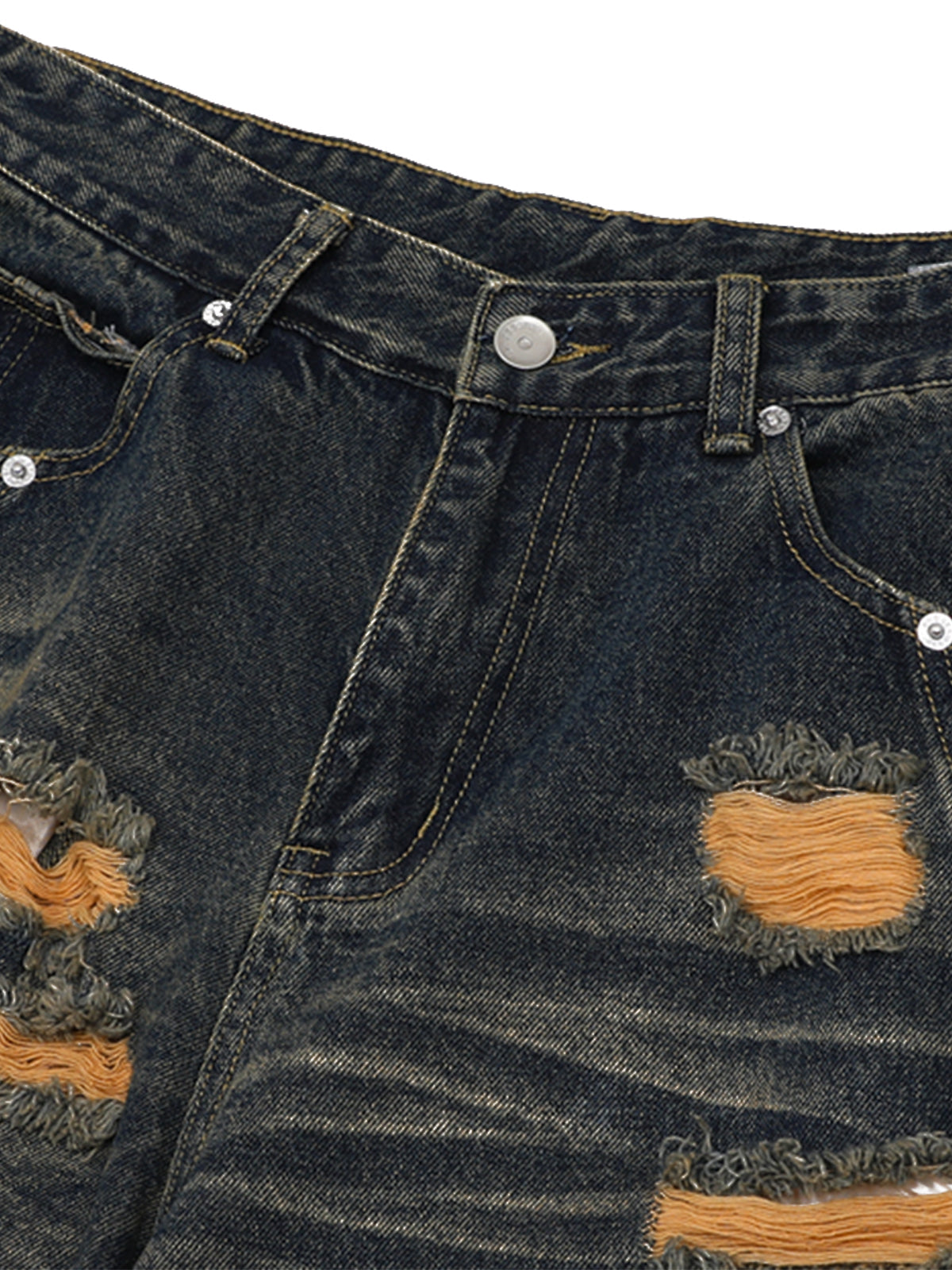 • Design Elements: Features a distressed look with intentional rips for a trendy edge