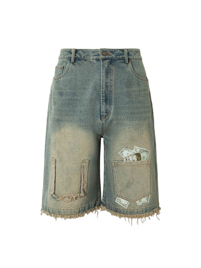 Distressed Ripped Deconstructed Split Barrel Jorts