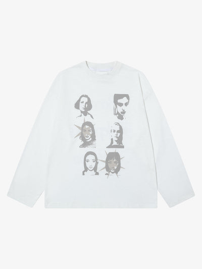 Retro Portrait Print Faux Two-Piece Long Sleeve T-Shirt - 2316
