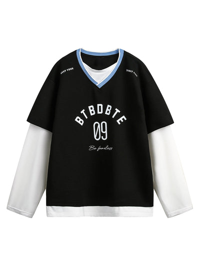 Faux Two-Piece Jersey Print Long Sleeve T-shirt - 2296