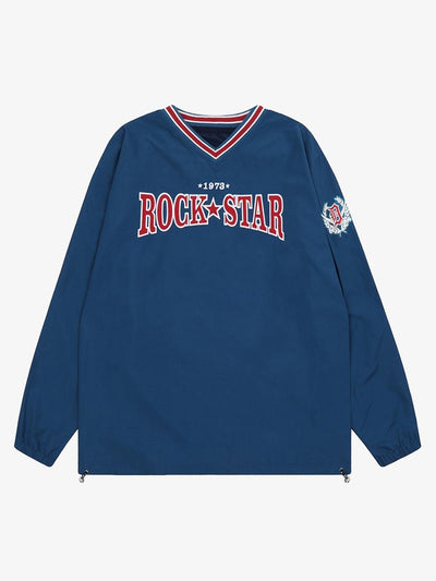 Retro Embroidered Monogrammed V-neck Sweatshirt - 2146