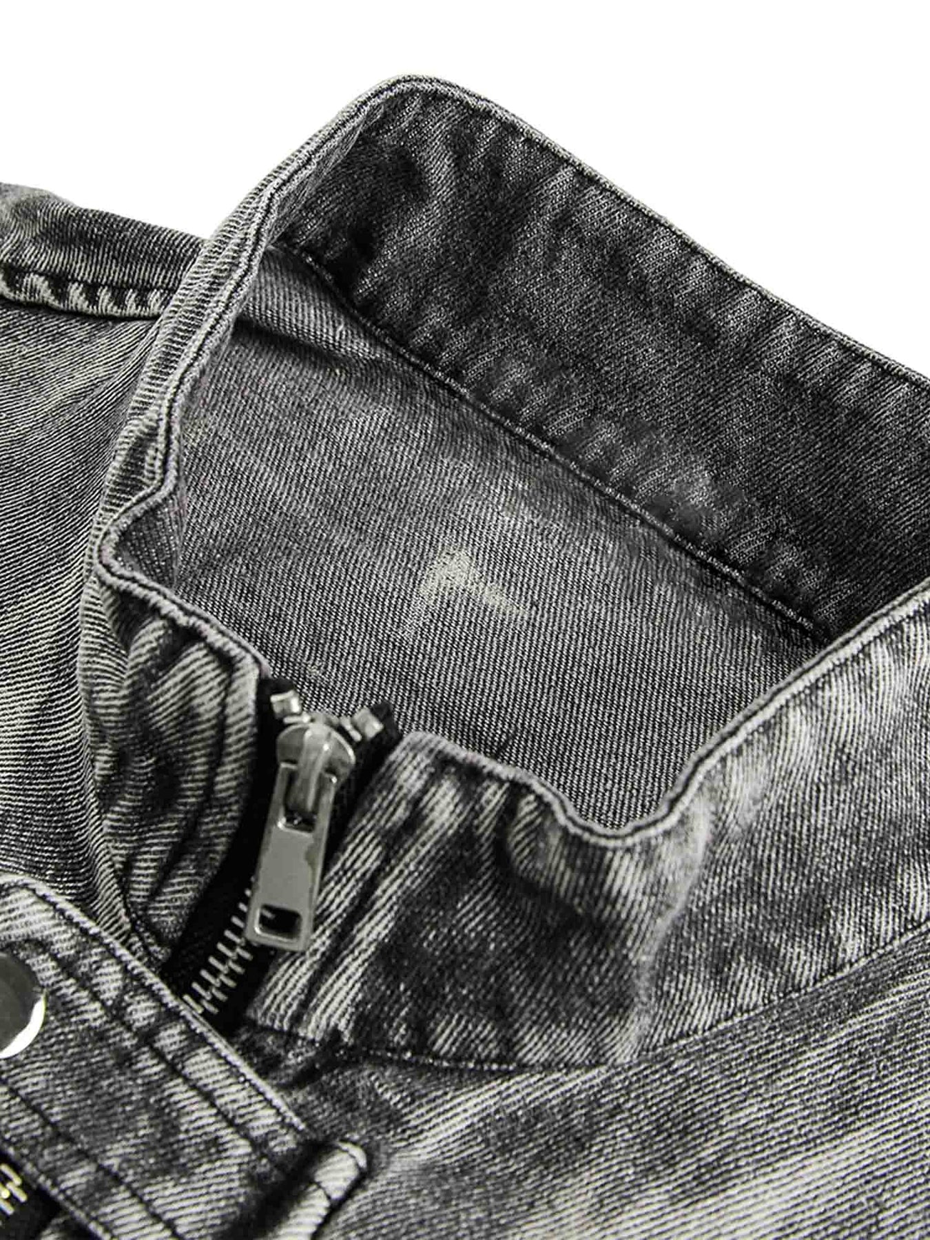 • Detail Features: Side Pockets, Button Closure, Distressed Effect, Ribbed Cuffs and Hem