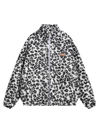 Stand Collar Cheetah Print Fleece Jacket