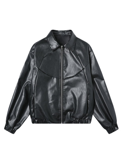 Deconstructed Zip Up Leather Bomber Jacket