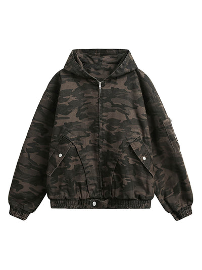 Deconstructed Camouflage Workwear Cardigan Hooded Jacket - 2290