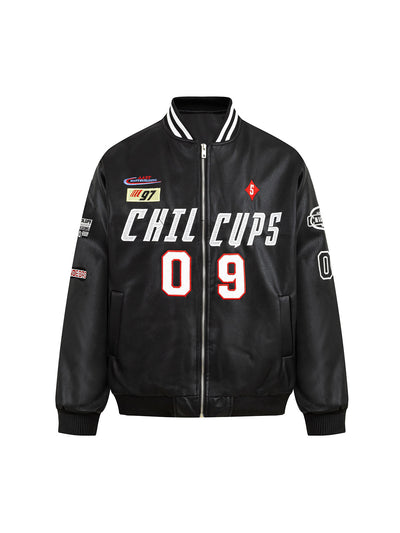 Thesupermade Hip Hop Bones Embroidered Leather Jacket - 1833