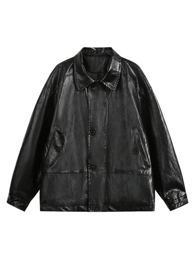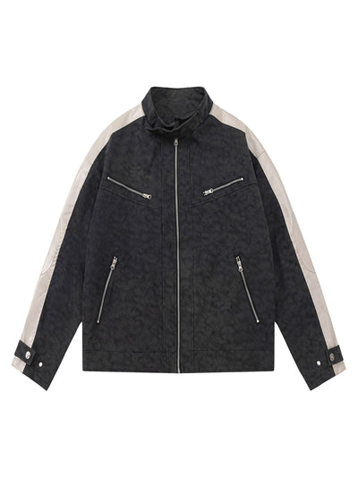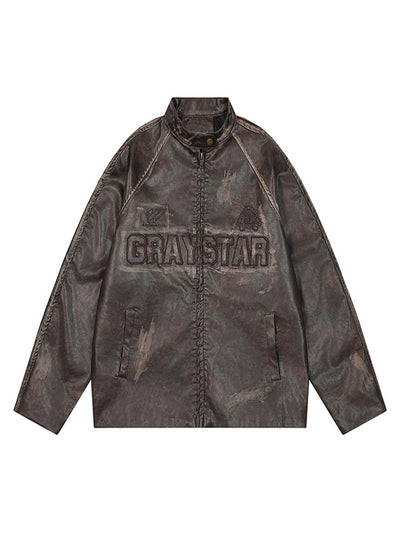 Distressed Letter Embroidery Motorcycle PU Leather Jacket