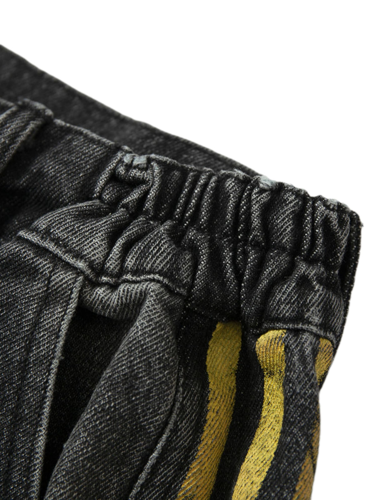 • Detail Features: Wide-leg, Yellow Side Stripe, Distressed Look