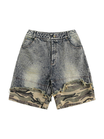 Distressed Camouflage Hem Denim Shorts