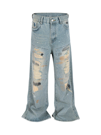 Ripped Distressed Baggy Flare Jeans