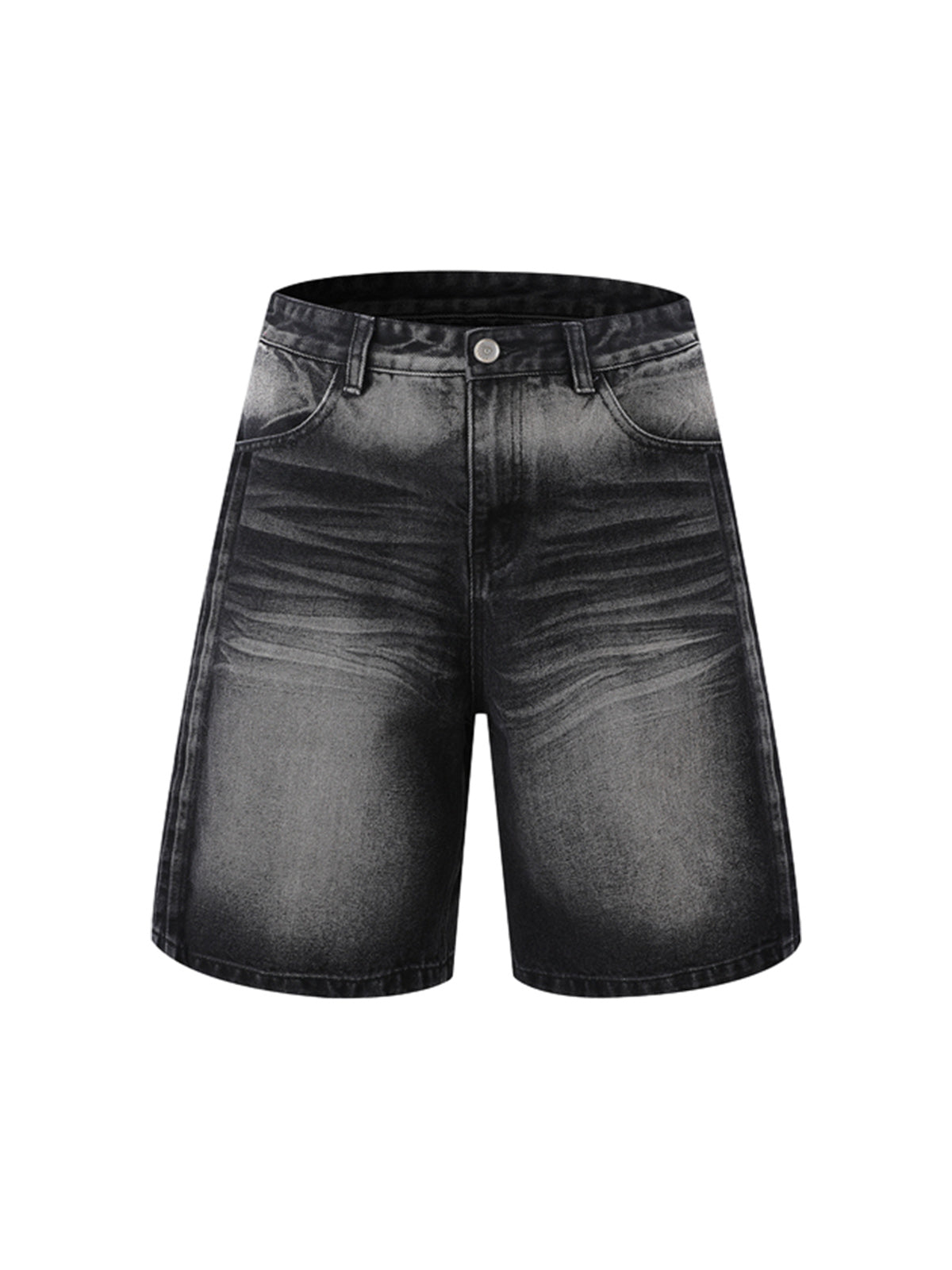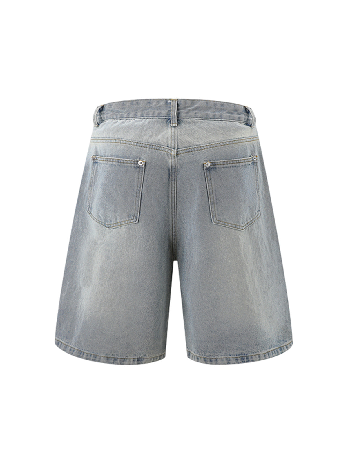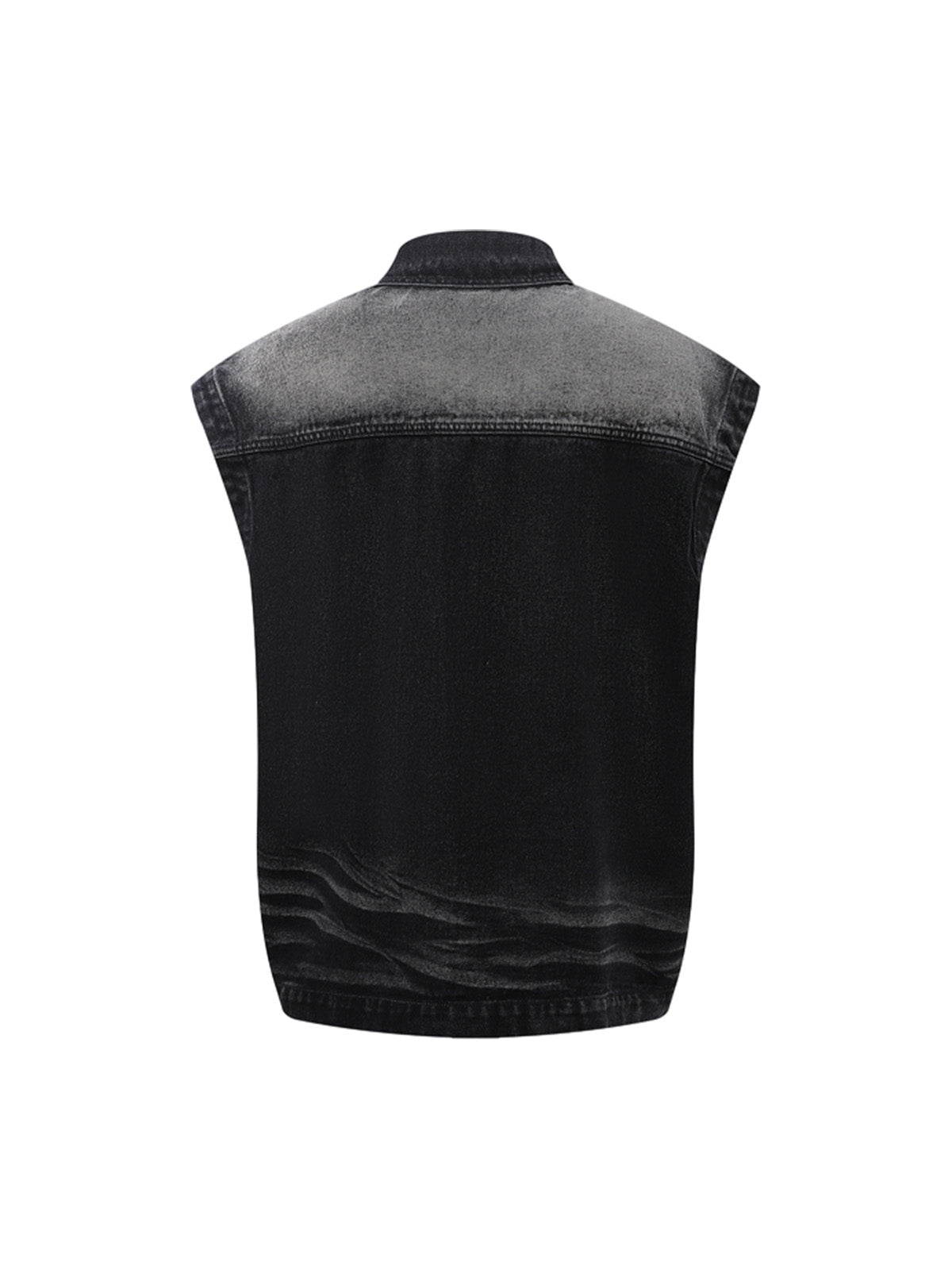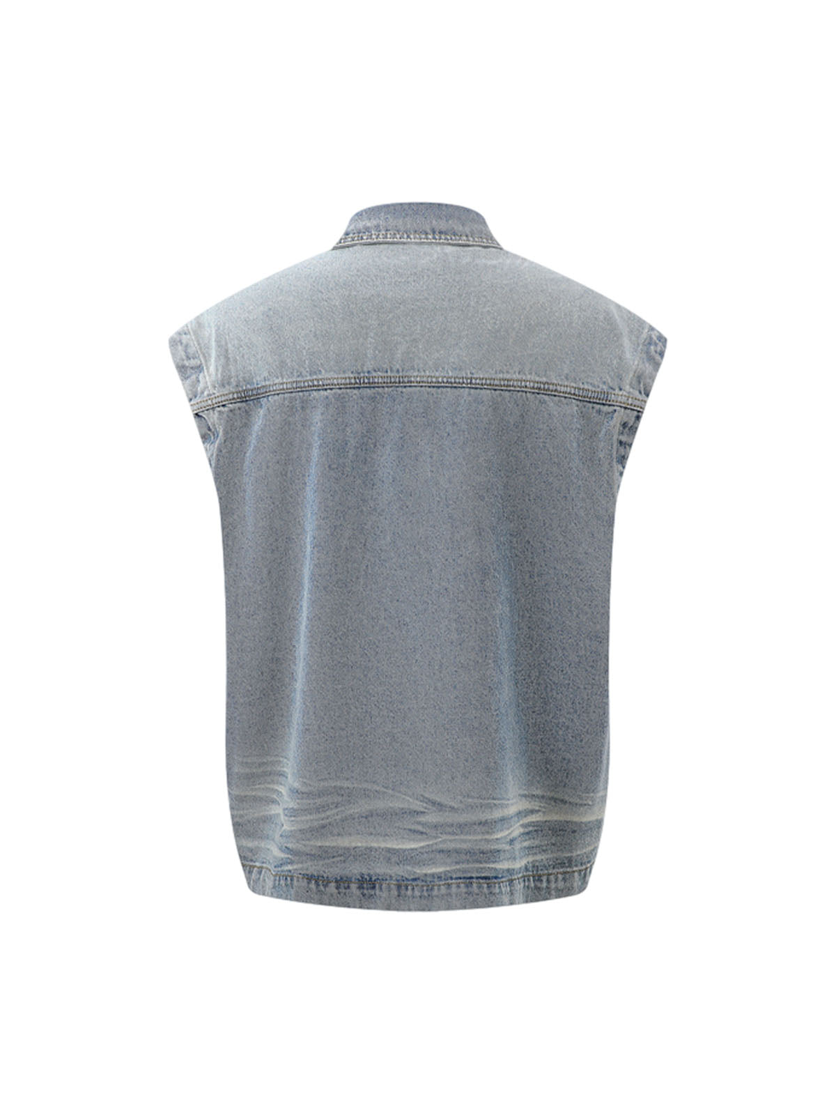 Distressed Washed Pleated Vest Jorts Denim Suit