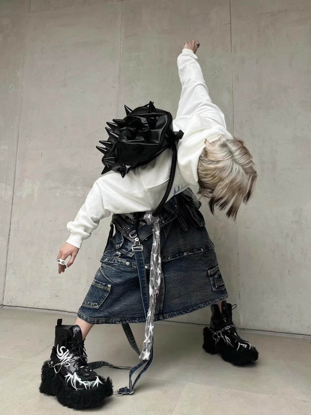 Street Rock Punk Dark Hedgehog Rivet Backpack