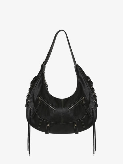 Lace-up Punk Motorcycle Metal Zipper Tote Bag