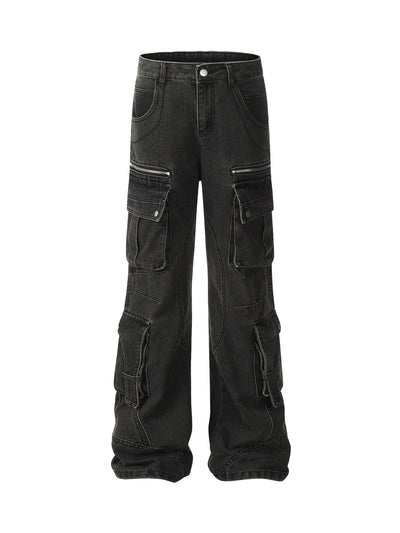 Washed Multi-pocket Cargo Jeans