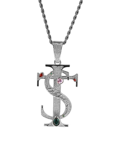 Zircon S Cross Pendant Necklace