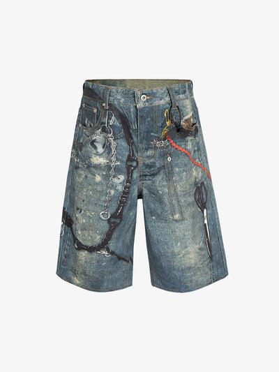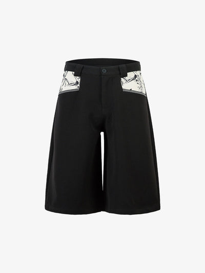 Retro Drape Baggy Straight Workwear Denim Shorts