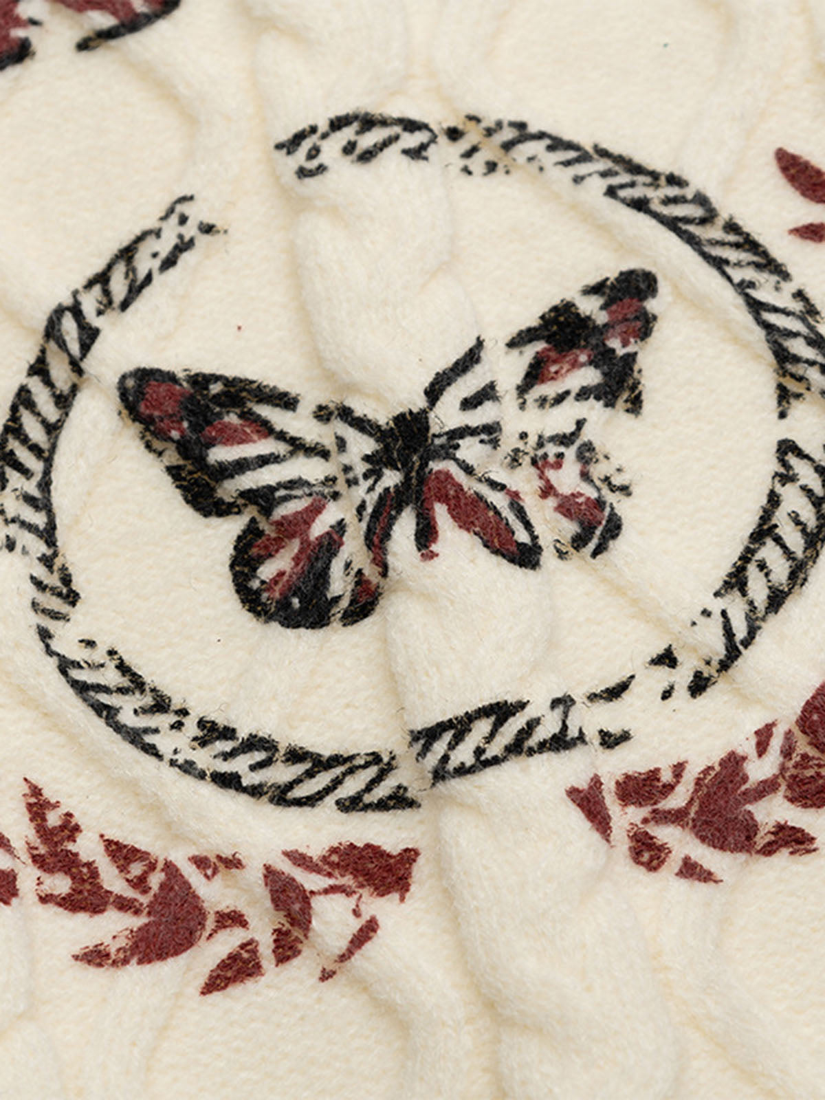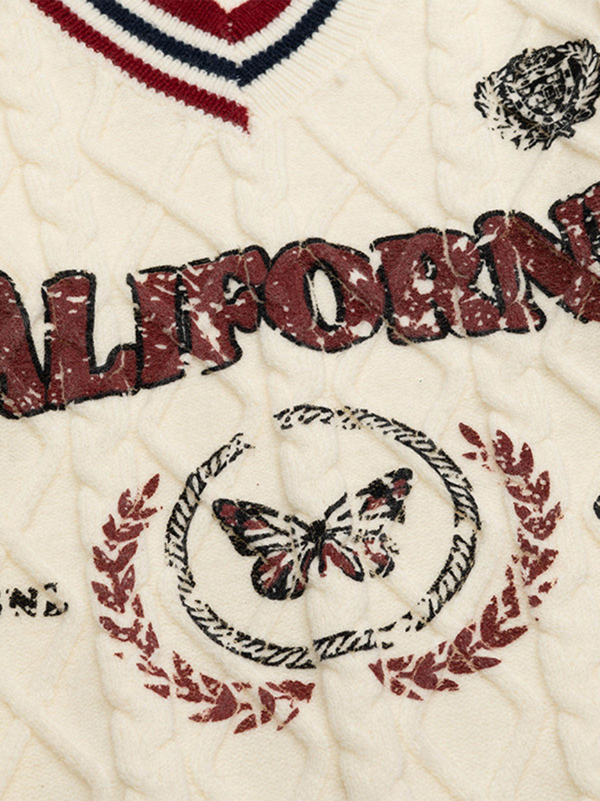 • Design Elements: Distressed lettering, embroidered butterfly emblem, and classic V-neck collar