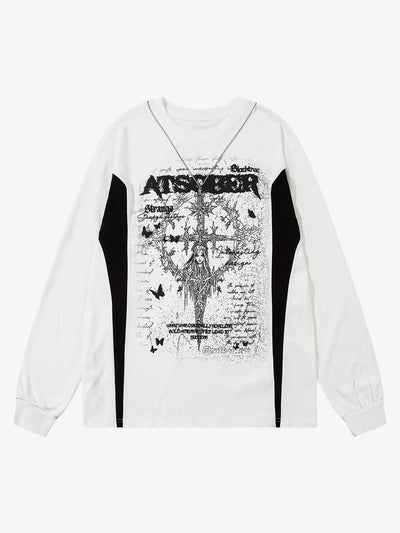 Star Necklace Cross Graphic Long Sleeve T-shirt