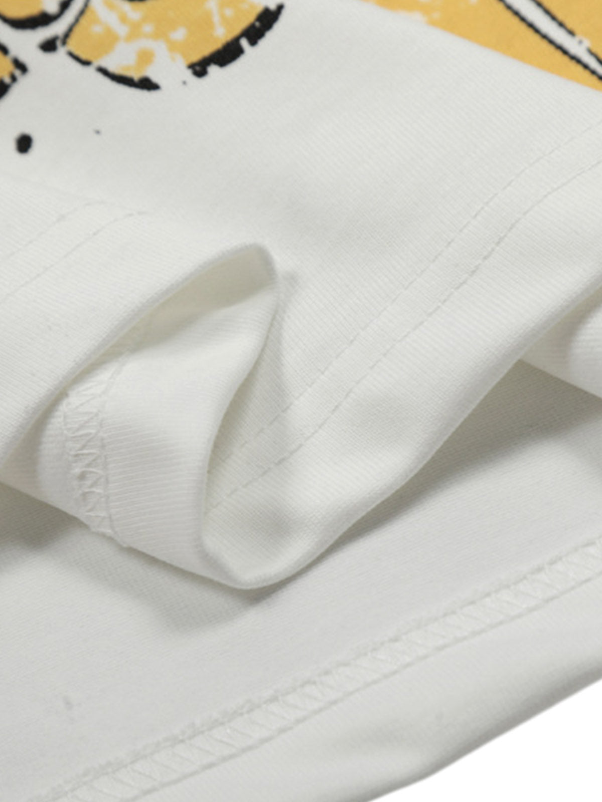 • Design Elements: Bold graphic print with eye-catching text and symbols, unique face illustration