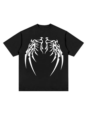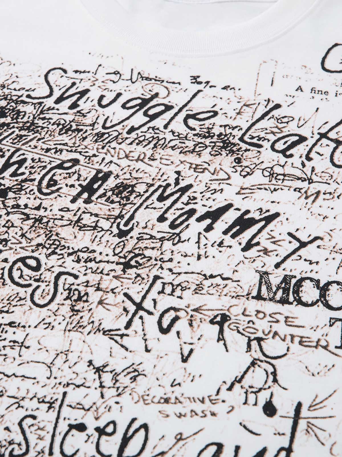 • Design Elements: Unique graffiti-style text print, relaxed fit, round neck