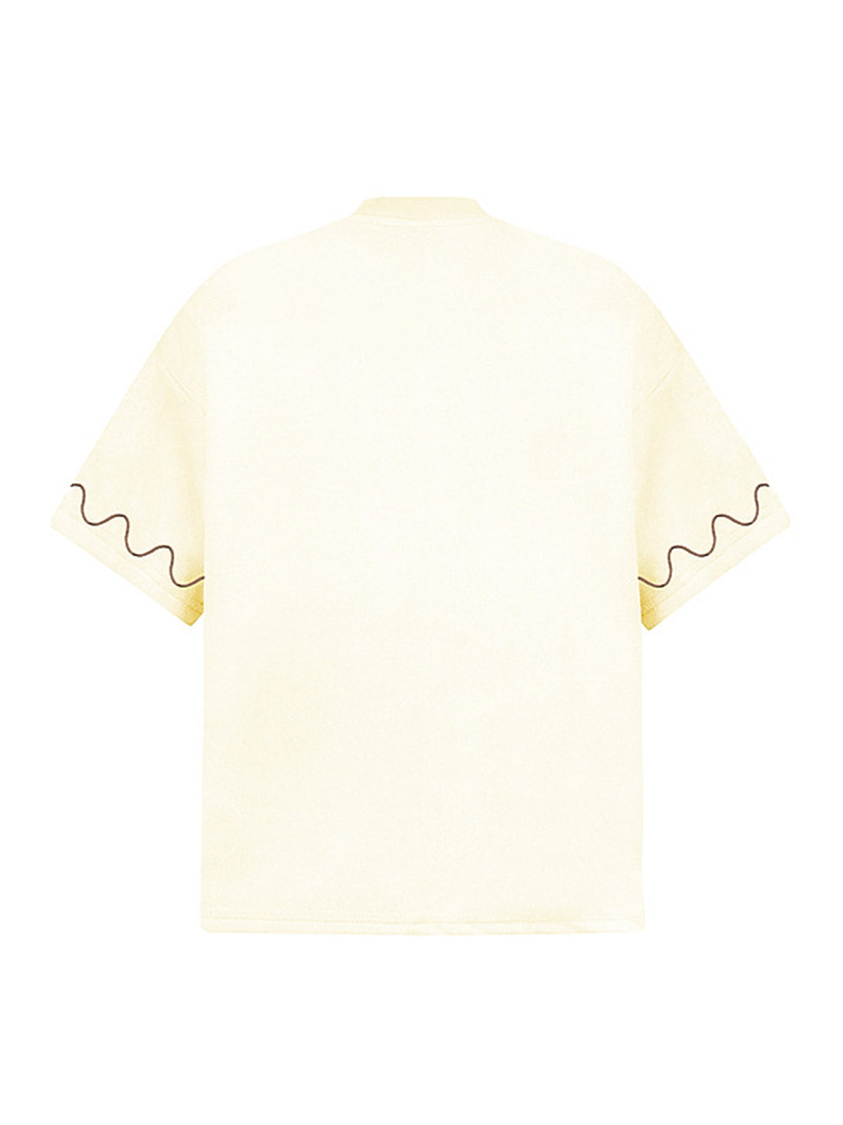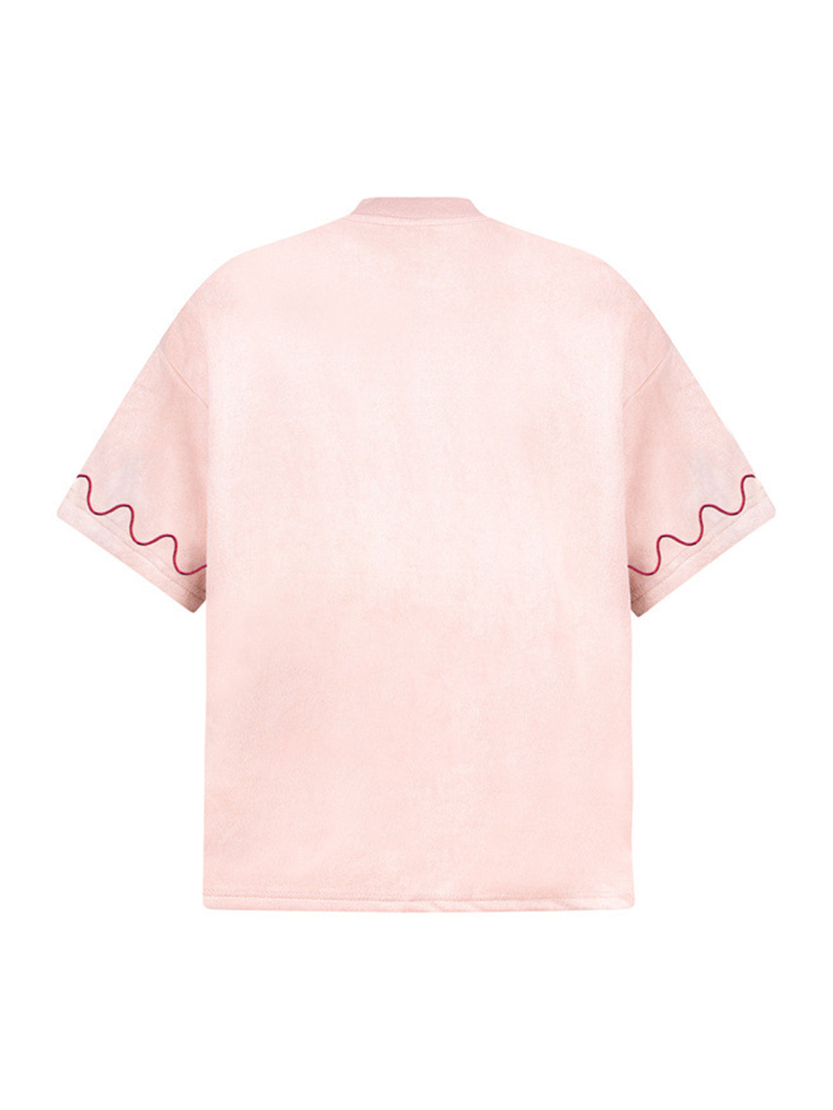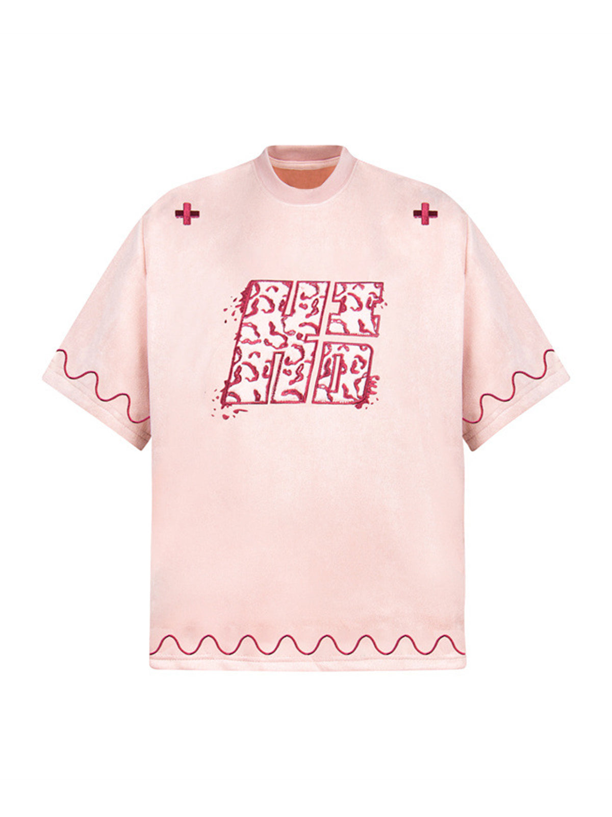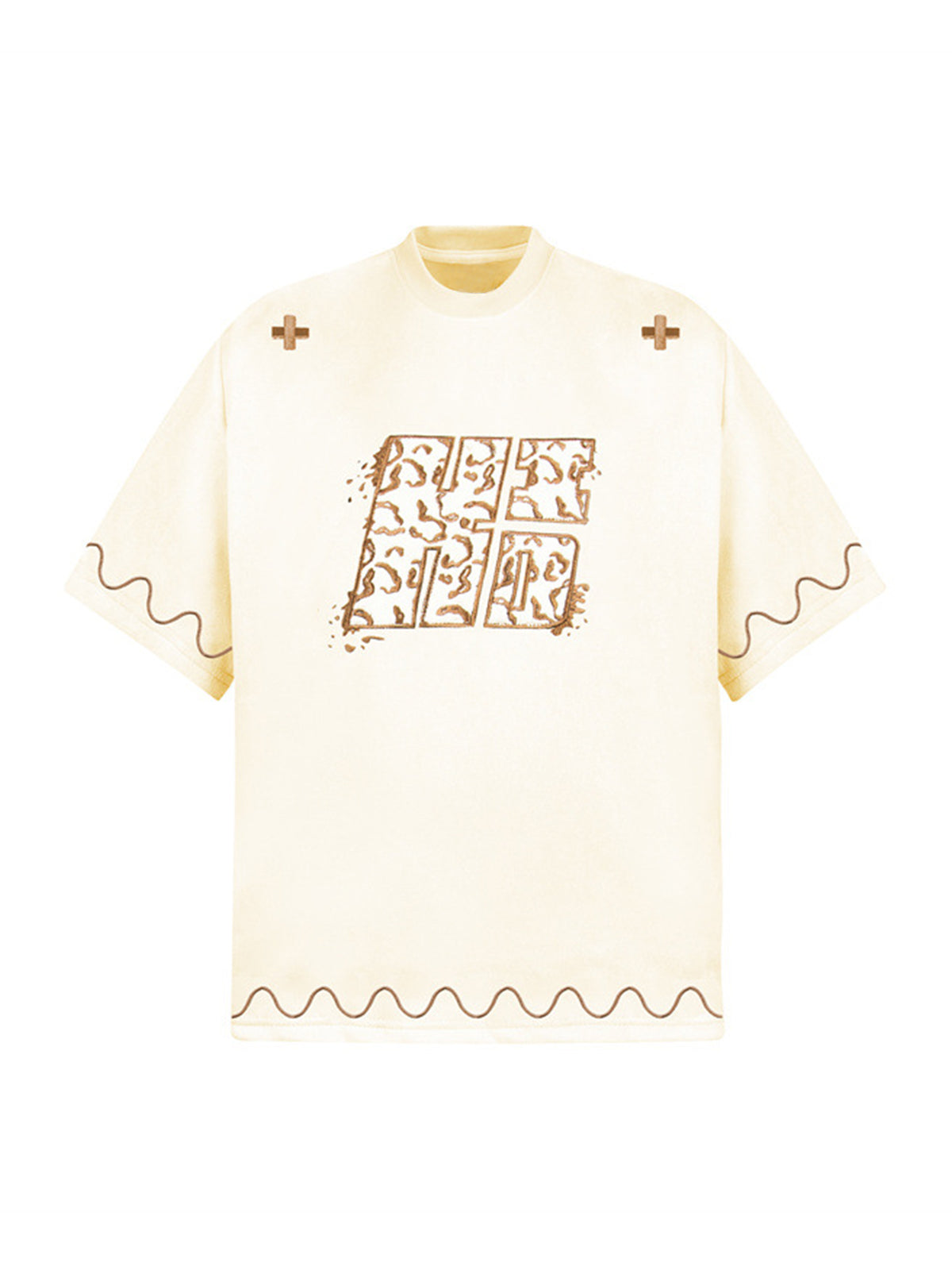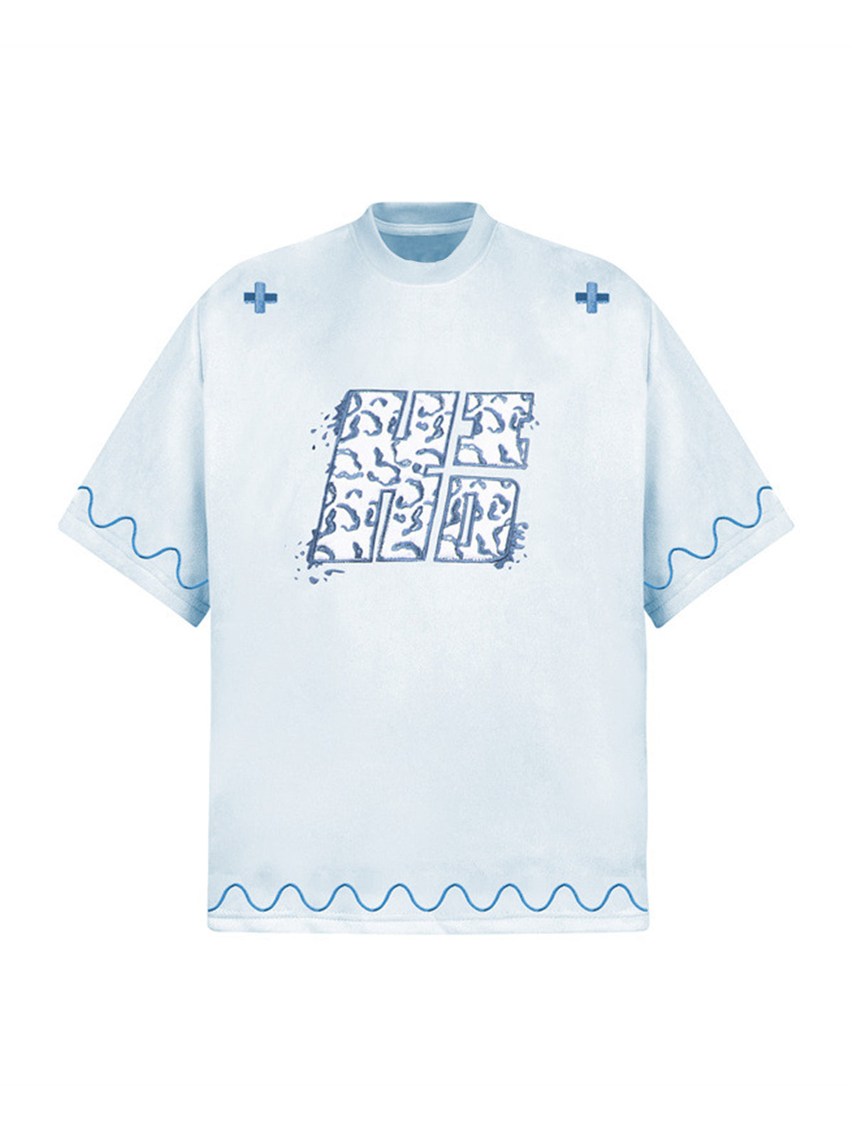 • Design Elements: Cross shoulder details, wave hemline, artistic graphic print