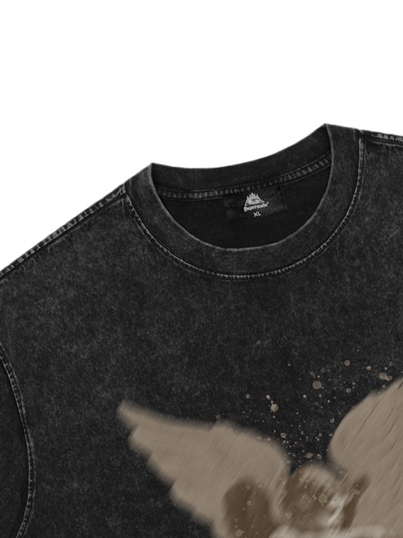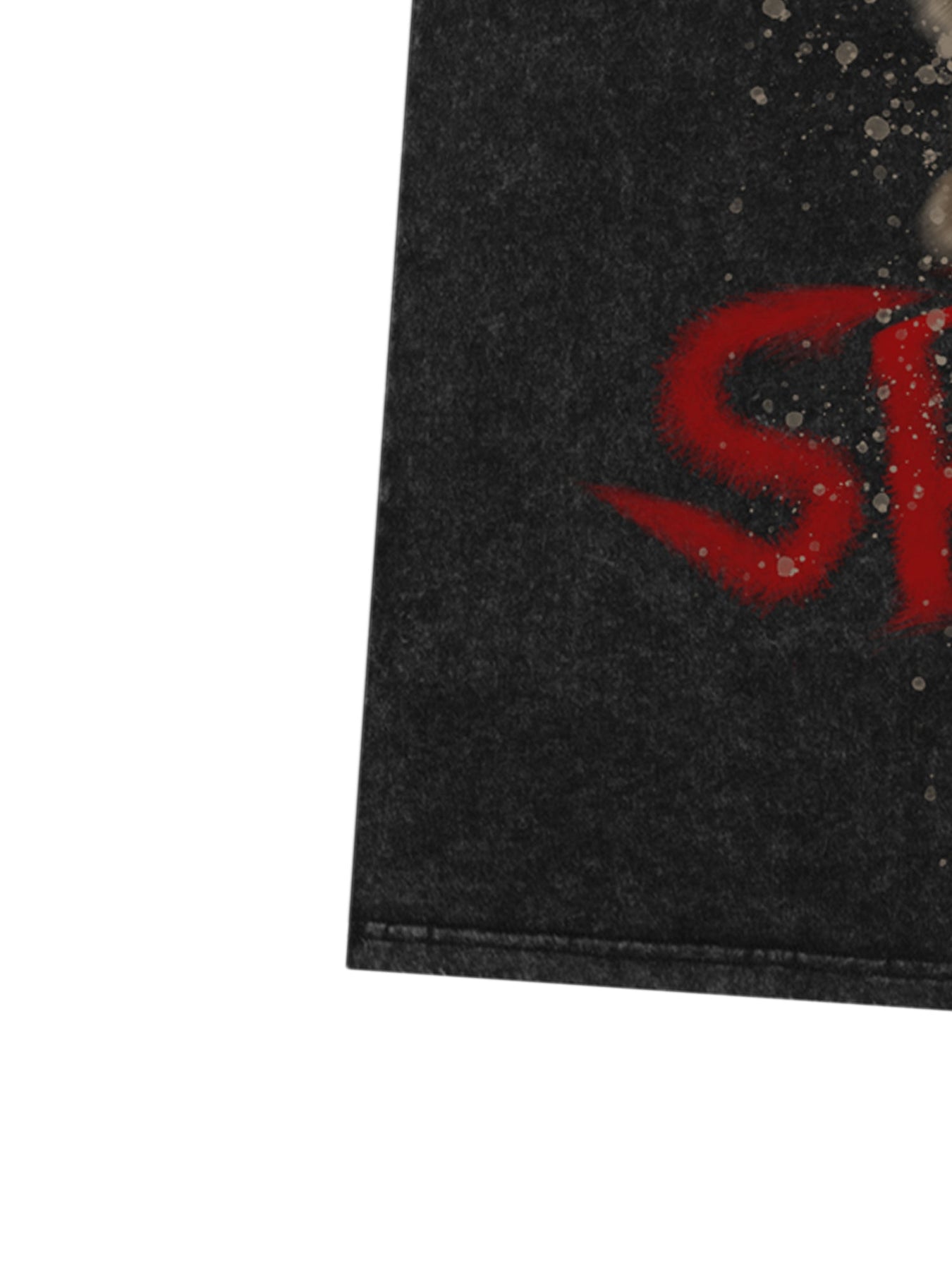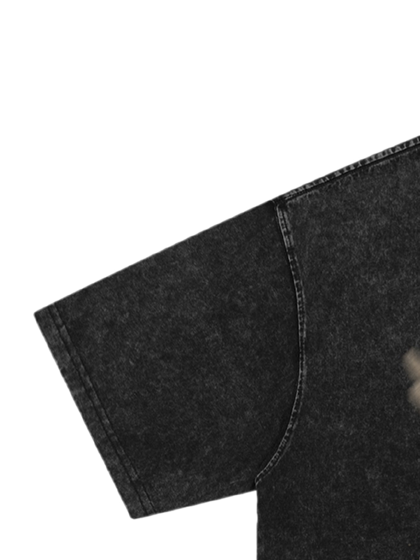 • Detail Features: Distressed Print, Crew Neck, Short Sleeves