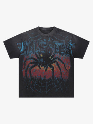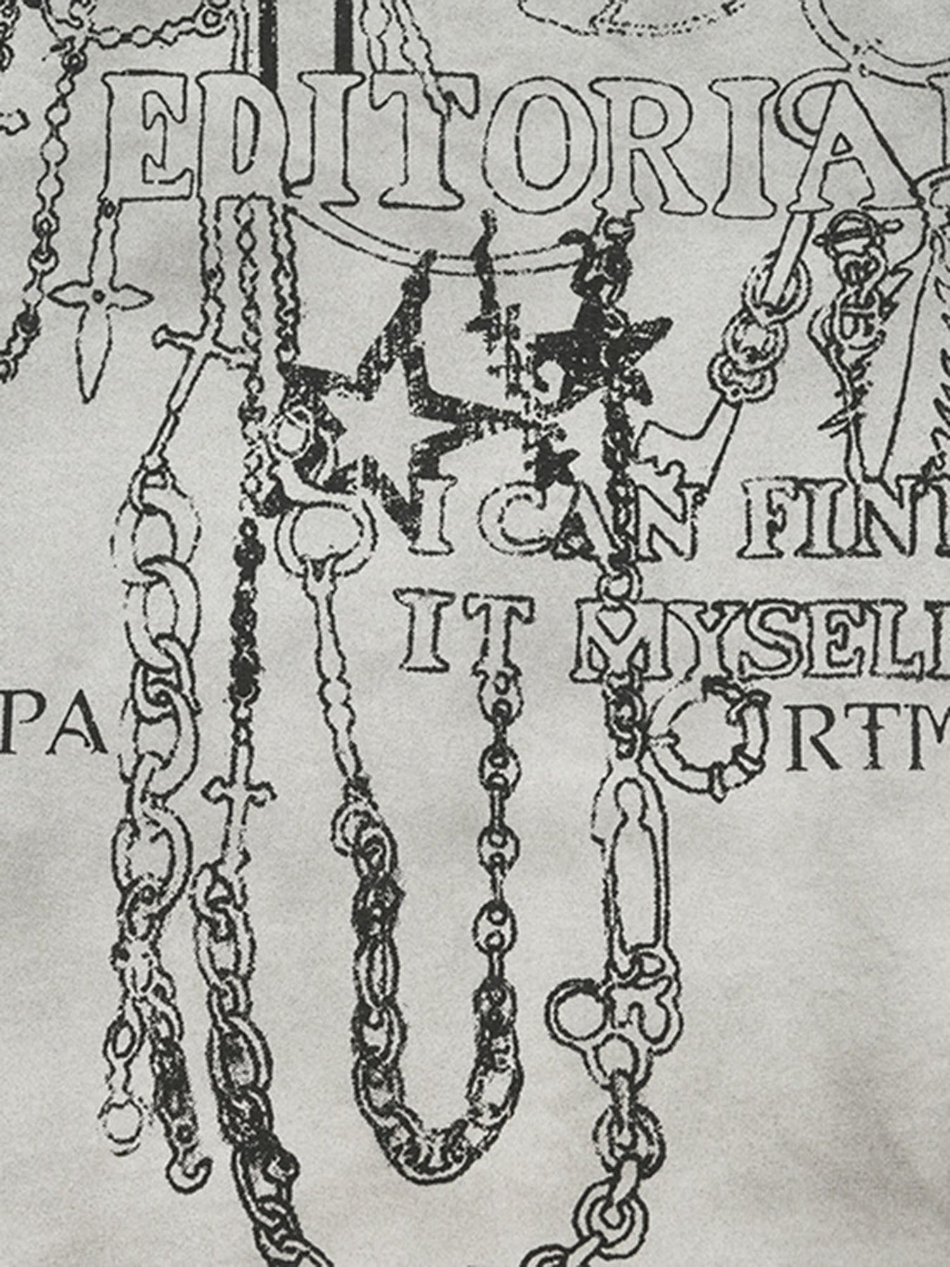 Mud-dyed Dirty Spray Cross Print Street Rap T-Shirt