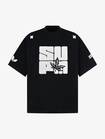Heavy Retro Patch Embroidered T-shirt - 2398