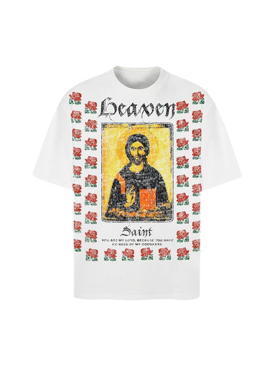 Original Retro Virgin Mary Mottled Cross Print T-Shirt