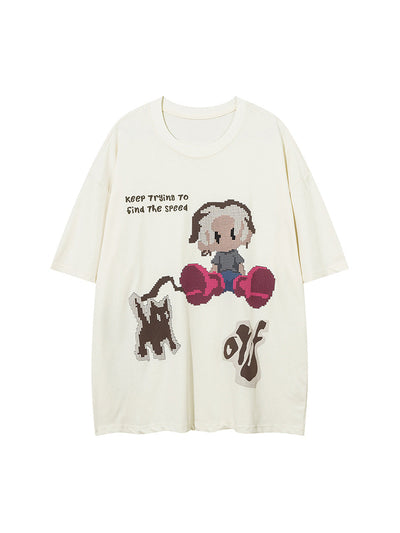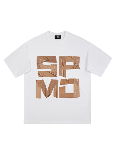 Distressed Letter Embroidered Short-sleeved T-shirt